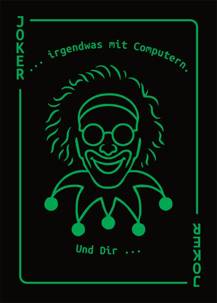 Jetzt hab ich mich auf ChatGPT eingelassen und da kam mir wieder die Logo-Idee mit dem IT-Joker. Ich hab ein Foto von mir hochgeladen und ich bin beeindruckt von dem Wiedererkennungswert!